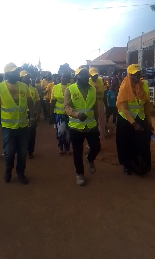 Bano nga bakulembeddwamu omukwanaganya w’enteekateeka eno Faizal Ndase okuva mu maka ga Pulezidenti,bakumbye mu bukakamu okuva e Mpererwe ku Muvule okutuuka ku kisaawe ewabade laale nga webakunga abantu okuyira Pulezidenti Museveni akalulu.