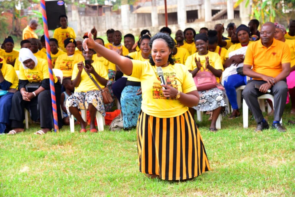 Namande Christine okuva e Lugala yeebaziza Pulezidenti Museveni olw’okuleeta emirembe mu ggwanga ate Safiina Namulindwa okuva e Lubaga yamusiimye nnyo olw’okubawa ssente z’Emyooga n’okubajja emanju.